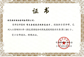 再生資源綜合利用先進(jìn)適用技術(shù)證書